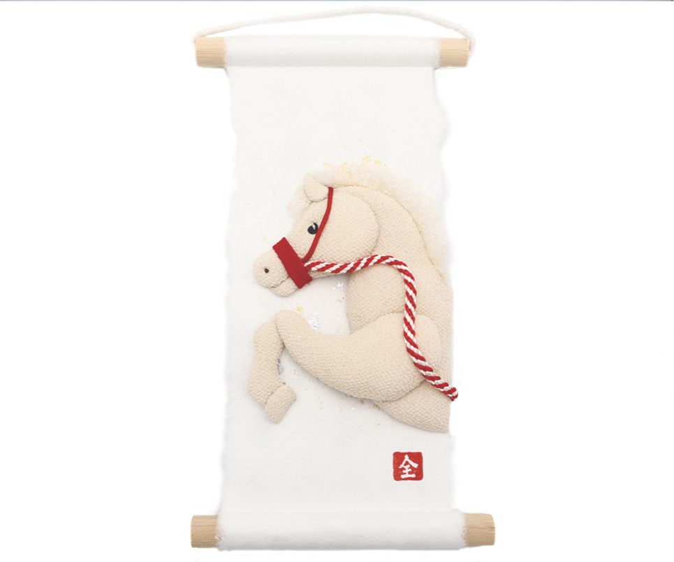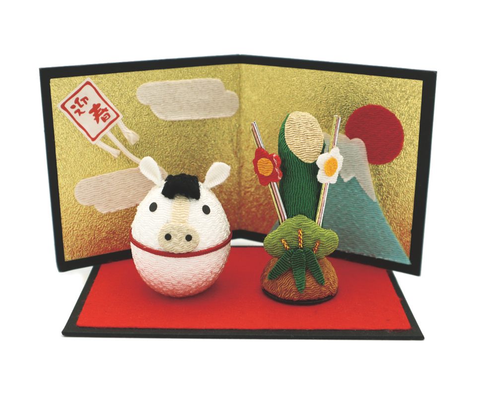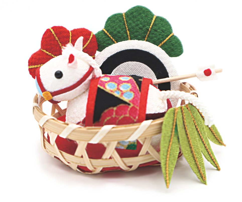 そんな一年の始めの行事を導いてくれる十二匹の動物たちと正月に因んだものをちりめん細工で表現しました。